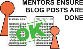 Students are expected to talk about their project publicly. At least one blog post (or video, or mailing list status update) per evaluation period, or ideally one a week. Blogs can be in the mentee's personal blog, the project blog, or guest posts on fossi-foundation.org.